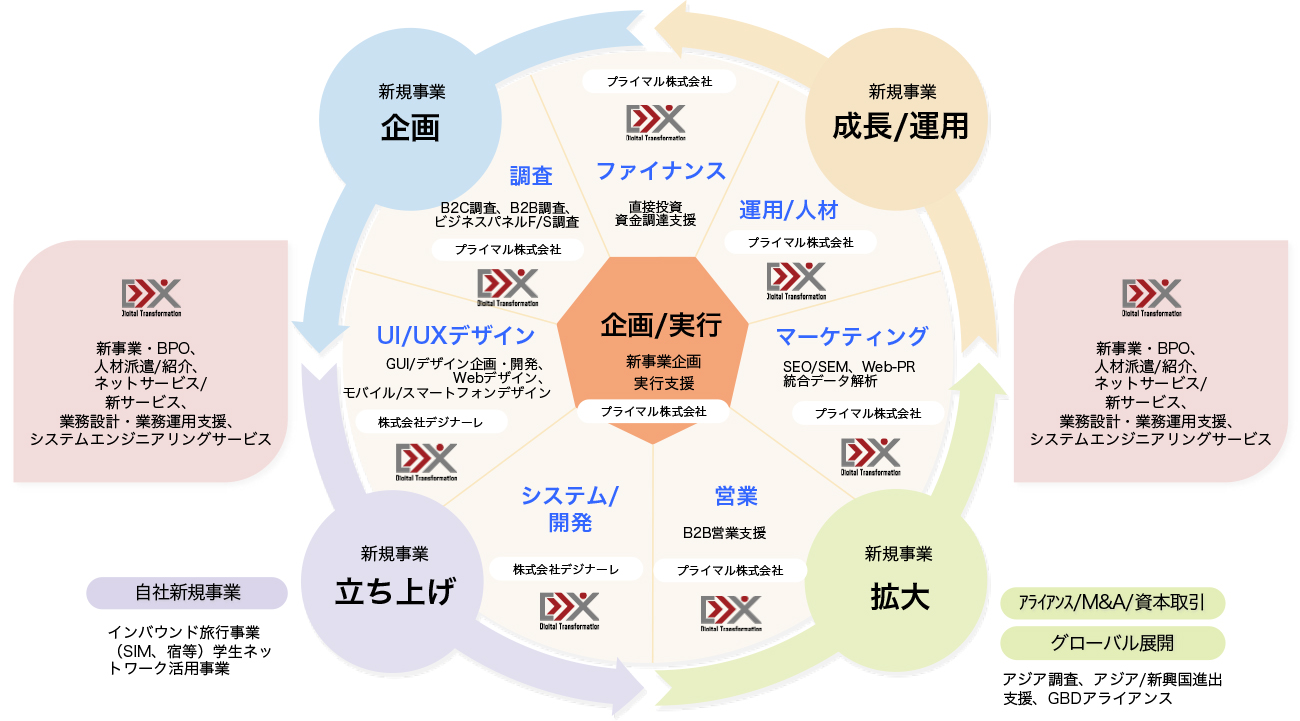 新規事業プロフェッショナル集団(プライマルグループとDX社)